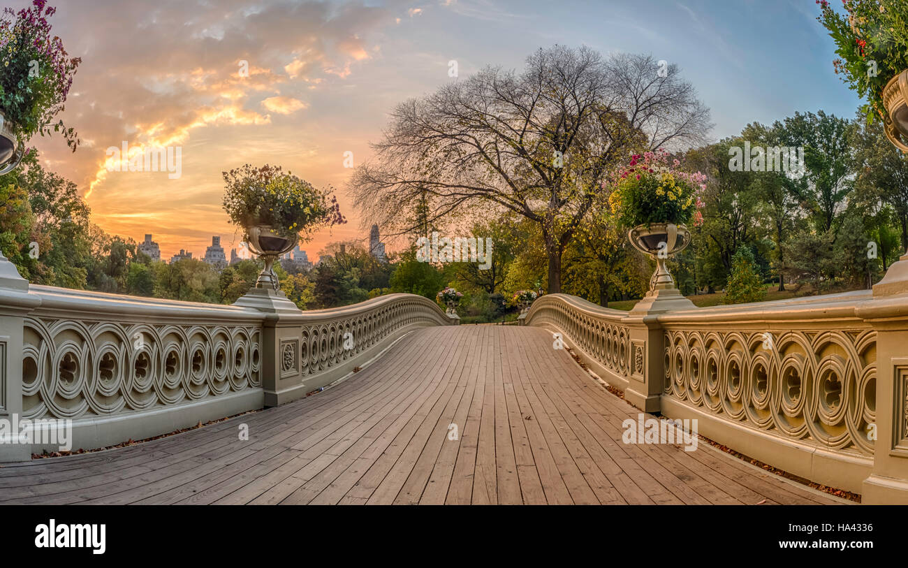 . The bridge connects two other well-known areas of the park - Bethesda Terrace and The Ramble. The Bow Bridge / ˈ b oʊ / is a cast iron bridge located in Central Park, New York City, crossing over the Lake and used as a pedestrian walkway